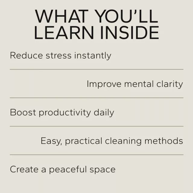 • Stress-Free Cleaning: Follow the stress-relief strategies and checklists to make cleaning a calming, satisfying experience.