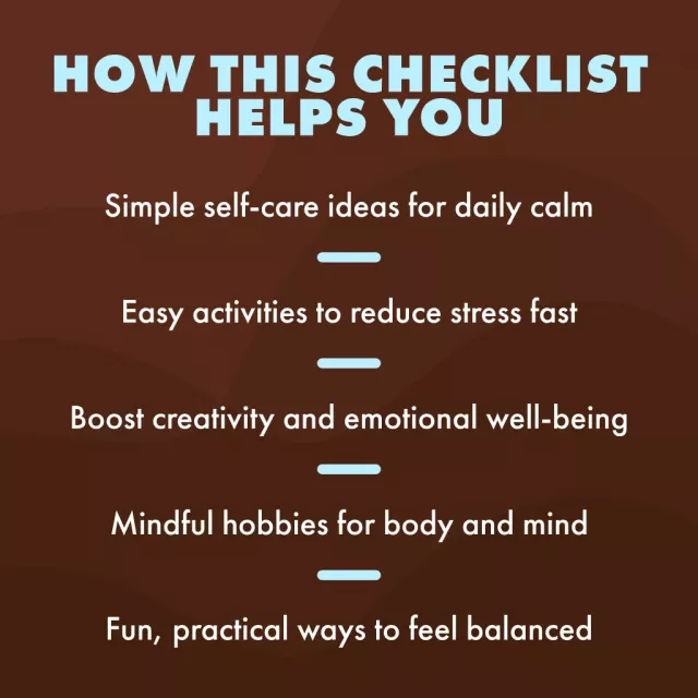Don’t let stress take control of your days. Download the Stress-Relieving Hobbies Checklist today and discover easy, enjoyable ways to feel calmer, happier, and more present. Perfect as a gift for yourself or loved ones who need a reminder to slow down and take care of their well-being.