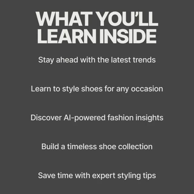 Why choose this guide? Unlike other shoe trend resources, this eBook combines style analysis with practical advice, AI-powered fashion tips, and case studies from influencers to help you curate your perfect collection. It’s not just about shoes – it’s about understanding how footwear can define your overall look and elevate your confidence.