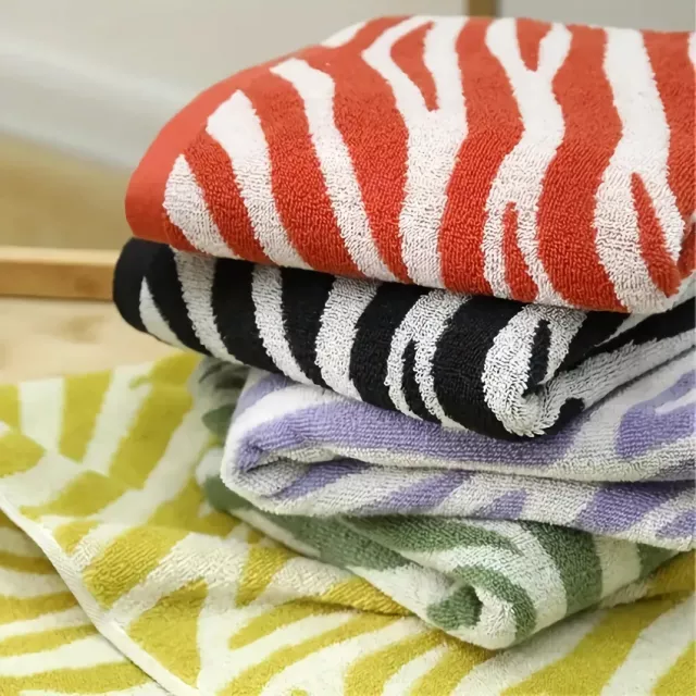 Not just a practical towel, but also a stylish one! The geometric striped pattern in vibrant colors gives your bathroom or spa space a sleek and modern look. With its ideal size, this towel works perfectly for both adults and kids alike, making it versatile for any household.