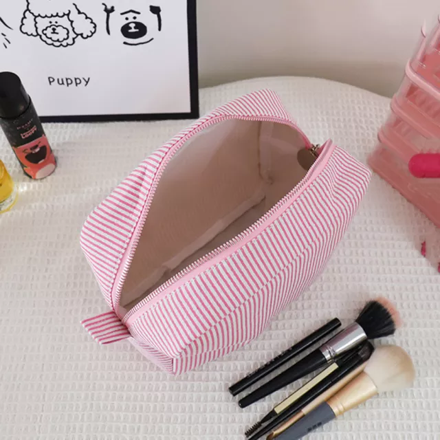 Striped Ruffle Cosmetic Bag with Zipper – Pink & Purple Travel Makeup Organizer