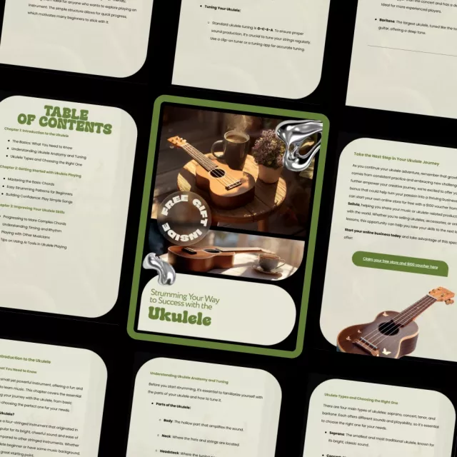 Ready to strum your way to musical success? Strumming Your Way to Success with the Ukulele is a comprehensive digital guide designed to give beginners the confidence and skills they need to start playing the ukulele with ease. Whether you’ve never picked up a ukulele before or are looking to improve your basic skills, this guide is packed with practical advice, step-by-step instructions, and easy-to-follow tutorials that make learning fun and achievable.