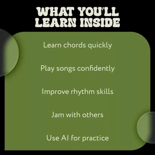 • Build a strong foundation in chords, strumming patterns, and musical timing.