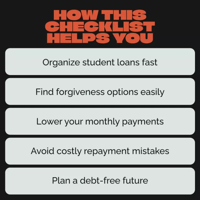 This checklist is perfect for students, graduates, or professionals dealing with federal or private student loans. If you feel confused about repayment plans, curious about forgiveness, or searching for how to get out of paying student loans the right way, this resource is built for you.