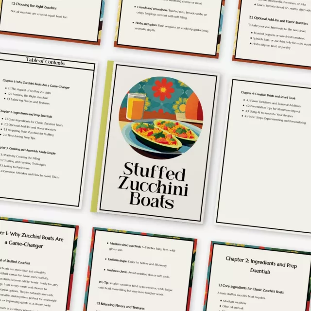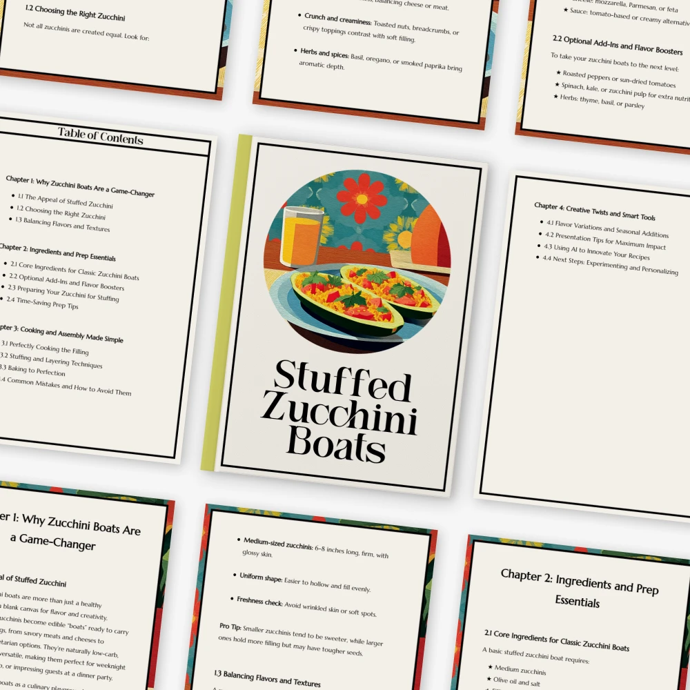 This digital resource goes beyond a basic stuffed zucchini boats recipe—it teaches technique, flavor-building, and creativity. You’ll not only cook the dish; you’ll understand it. With its blend of approachable cooking instruction and unique ideas (including AI-powered inspiration), this guide offers more depth and value than standard recipe PDFs.