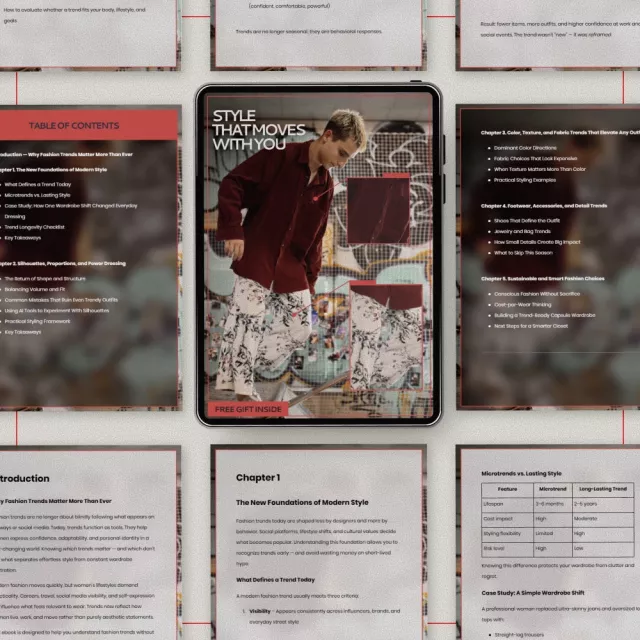 Style That Moves With You is more than a fashion ebook—it’s a practical, confidence-building guide designed for women who want to understand trends without chasing every passing moment. In a world where fashion changes fast, this digital guide helps you decode what actually matters, so your wardrobe works harder, smarter, and more intentionally. If you’ve ever felt overwhelmed by trends or unsure what’s worth investing in, this guide was created for you.