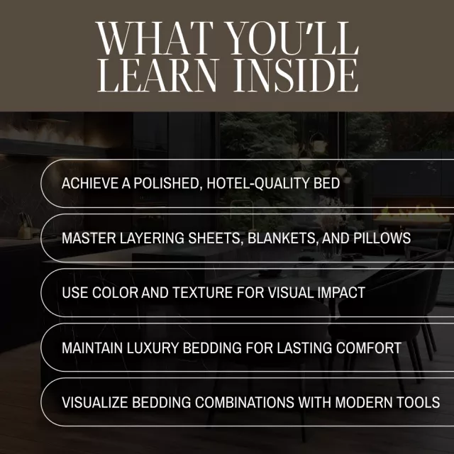 • Chapter 3: Styling Techniques for a Polished Look – Discover bed layering tips, color coordination, texture balance, a case study transforming a basic bed into a luxury centerpiece, and common mistakes to avoid.