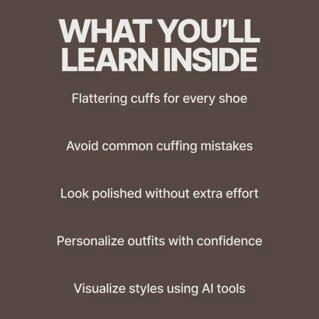 Ever feel like your jeans almost work with your shoes—but not quite? Styling Jeans with Every Shoe Type is a practical, style-forward digital guide that shows you exactly how to elevate your outfits through smart cuffing techniques. Whether you live in sneakers, love boots, or rotate between heels and flats, this guide breaks down how to cuff jeans for different shoe types in a way that’s easy, modern, and confidence-boosting. Designed for real life and real wardrobes, this resource helps you turn everyday denim into a polished, intentional look.