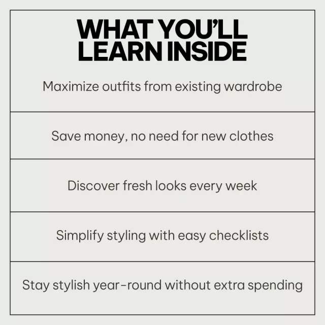 This is such a practical resource! The checklists are super helpful and easy-to-follow, making the process of styling your existing clothes simple and stress-free. Plus, it's saving me so much time when getting ready in the morning!