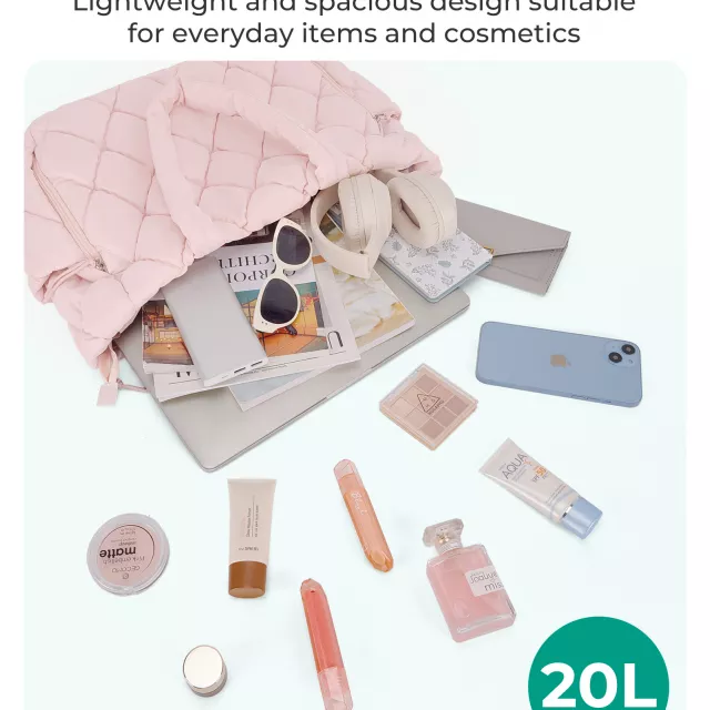 Measuring 15.3 x 5.9 x 12.4 inches, this stylish tote has a generous capacity of 20 liters, offering plenty of room for your essentials. It’s large enough to hold documents, books, cosmetics, and even a 15-inch laptop, making it an excellent choice for work and study. With its minimalist yet fashionable quilted design, this bag transitions effortlessly from a work bag to a travel tote, making it suitable for any occasion—from gym sessions to beach trips!