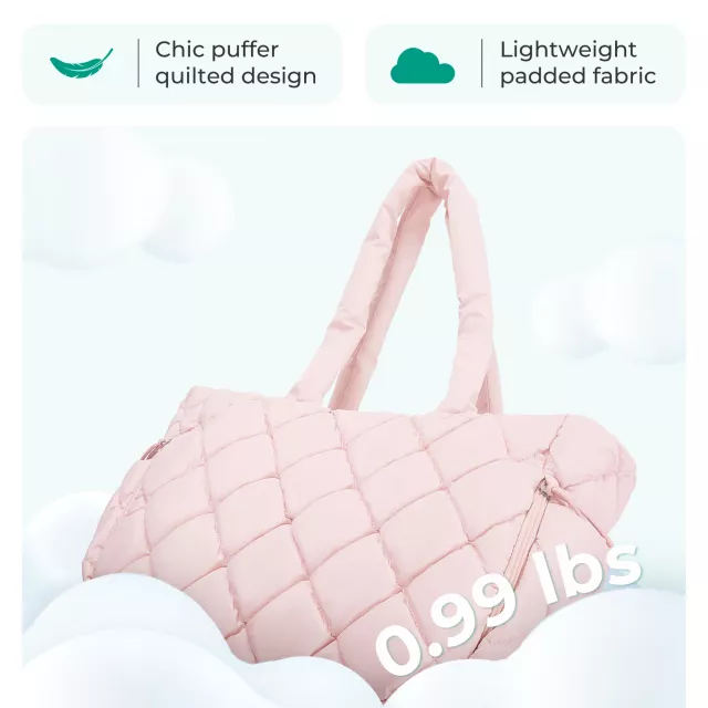 Our Quilted Puffy Tote Bag stands out due to its thoughtful combination of fashion and function. Made from lightweight and durable polyester, it weighs only 0.99 lbs, making it comfortable to carry around. The soft, water-resistant material ensures your belongings stay dry, adding to the bag’s practicality. Moreover, the stylish puffer design not only makes a statement but also offers a modern touch that complements any outfit.