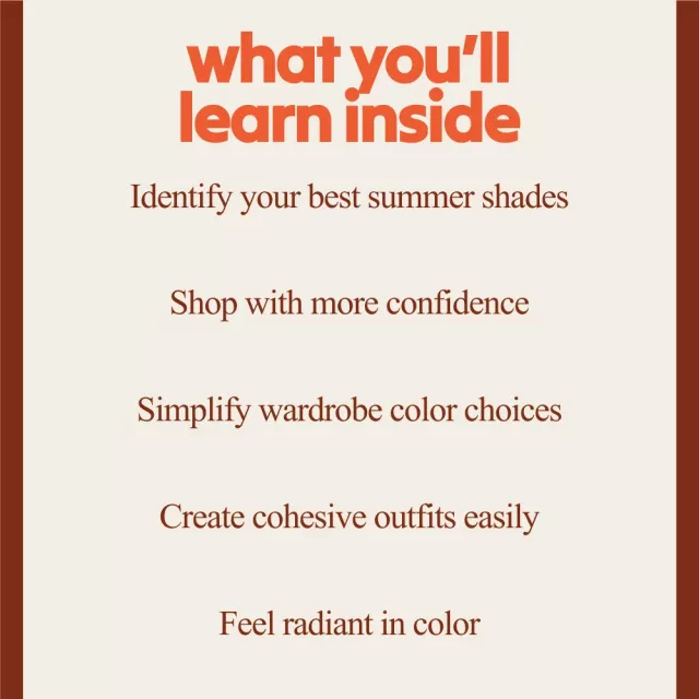 If you’re ready to feel confident in every color you wear, this is your sign. Download the Summer Color Harmony Bundle today and start building a wardrobe that truly reflects you.