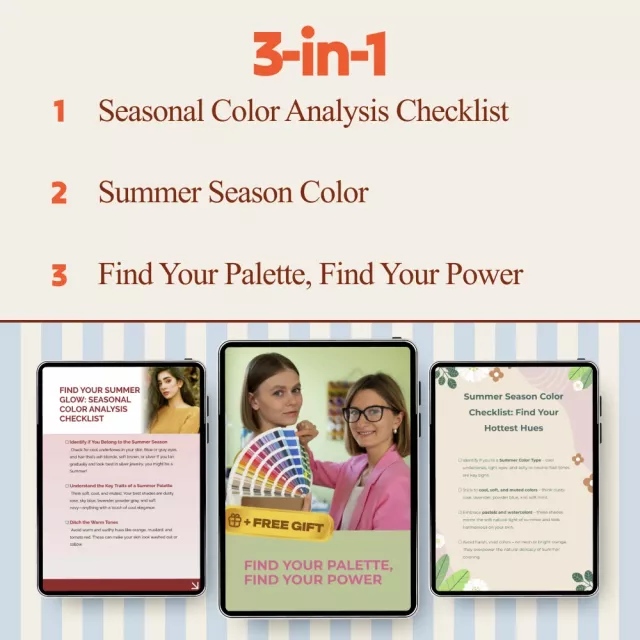 This bundle is perfect for women exploring personal style, creatives refining their aesthetic, or anyone curious about seasonal color analysis without the high cost of a consultation. Whether you’re new to color theory or already familiar with summer season colors, these resources meet you where you are.
