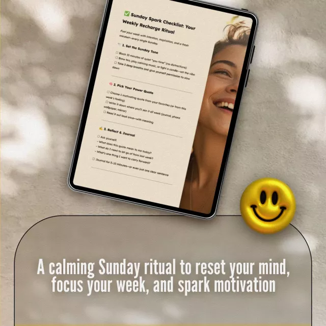 Don’t let another week pass by on autopilot. Start using the Sunday Spark Checklist: Your Weekly Recharge Ritual and transform your Sundays into a sacred space of intention, inspiration, and self-alignment. Your future self will thank you. Ready to spark your Sunday?