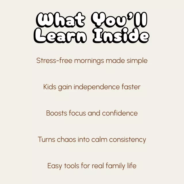 • Chapter 3: Designing a Kid-Friendly Morning — learn how to use visual charts, fun incentives, and balanced schedules.