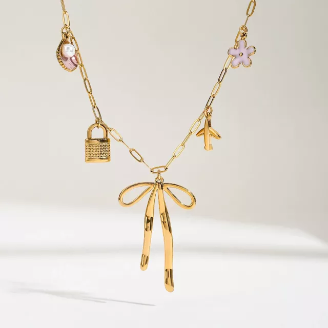 What makes this necklace truly special is its balance of style and strength. The sweet bow multi-pendant design adds a feminine touch that never goes out of style, while the durable stainless steel ensures you’ll enjoy it for years. It’s the ideal piece for anyone who wants jewelry that is both beautiful and low-maintenance. Wear it to elevate your daily outfits or let it be the finishing touch to your party look.