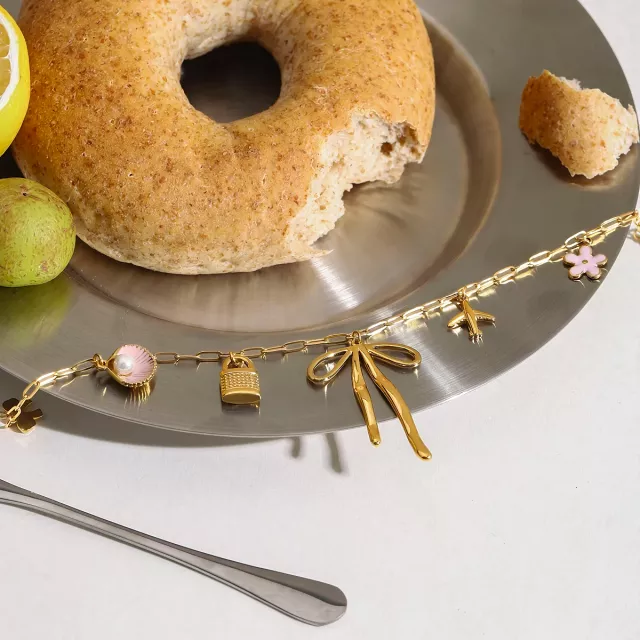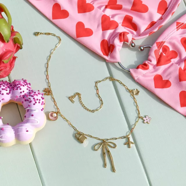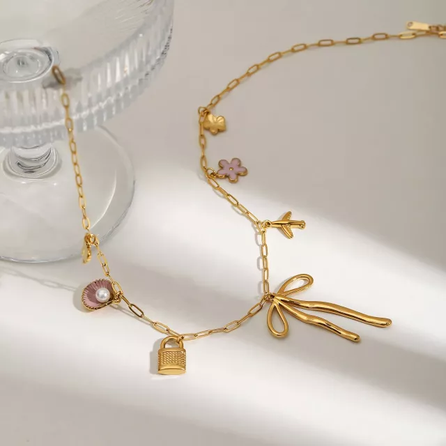 Every detail of this necklace has been carefully designed to ensure both beauty and practicality. The multi-pendant bow design offers a playful yet elegant aesthetic, making it suitable for both casual and dressy occasions. Made with 18K PVD gold plating, the necklace keeps its radiant color for years, resisting scratches and fading. Since it’s stainless steel, the piece is also waterproof and safe for daily wear.