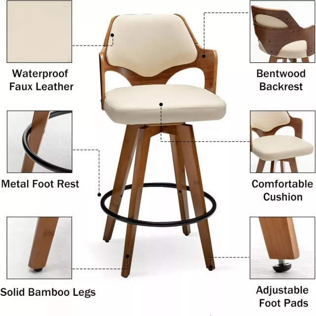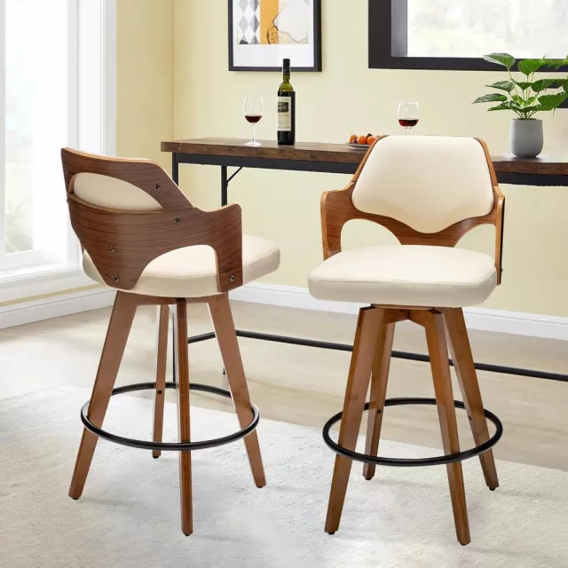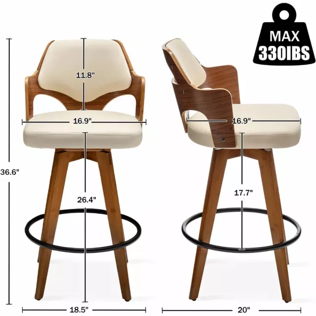 Bring timeless charm and everyday functionality to your kitchen or dining space with this set of 2 swivel counter height bar stools. Thoughtfully designed to blend retro appeal with a modern touch, these stools instantly elevate your home’s atmosphere. Whether you’re sipping your morning coffee at the kitchen island or hosting friends at the bar, these low-back chairs deliver both visual appeal and superior comfort.