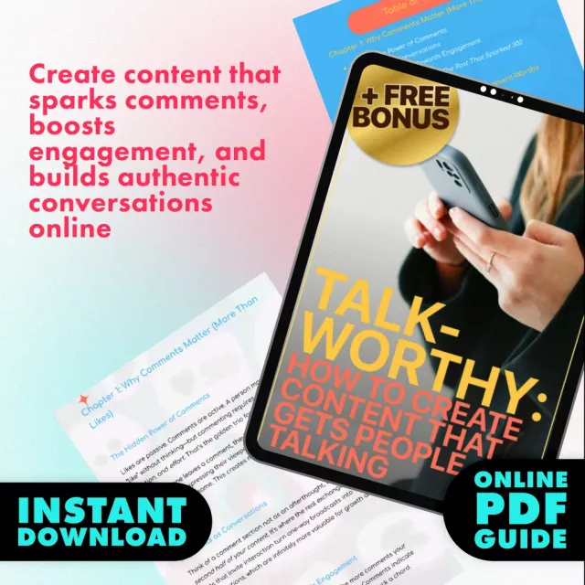 Want to create content that doesn’t just get likes—but actually sparks conversations? Talk-Worthy: How to Create Content That Gets People Talking is your step-by-step digital guide to mastering the art of engagement. Whether you’re a creator, small business owner, coach, or social media manager, this guide shows you exactly how to craft posts that invite meaningful comments and turn casual scrollers into an active community. If you’ve ever wondered why some content goes viral with conversations while yours struggles to get noticed, this is the resource you’ve been waiting for.