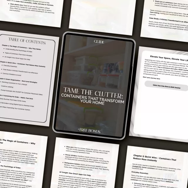 Download Tame the Clutter: Containers That Transform Your Home today and discover exactly what basic containers reduce mess instantly — plus smart strategies to keep it that way. Transform your home, one container at a time!