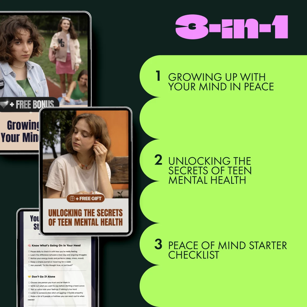 This is more than just tips, it’s a holistic approach to teen mental health. The guide, checklist, and eBook combo works wonders.
