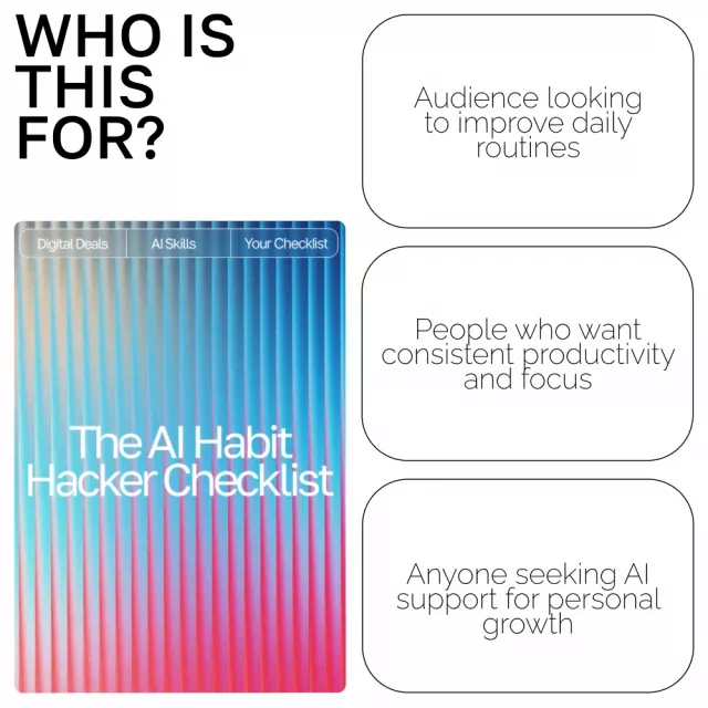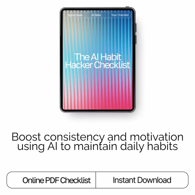 Don’t wait to build routines that stick! Download The AI Habit Hacker Checklist now and start using AI help maintaining daily habits to transform your days, track your progress, troubleshoot obstacles, and celebrate every win. Your most productive, consistent, and motivated self is just a click away.