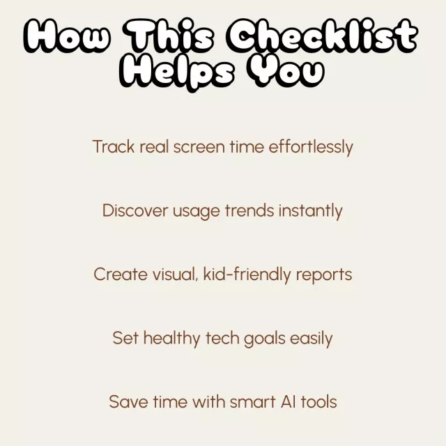 👍 This checklist is a lifesaver! It's so easy to use and it really helps me manage my kids' screen time effectively. The AI tools are super helpful in providing data insights that make the whole process less stressful for us parents.