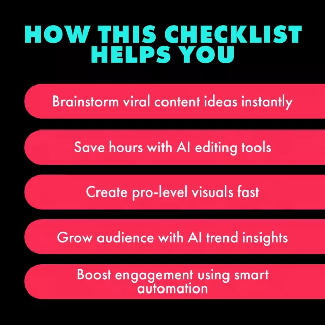Unlike generic guides, this checklist is curated specifically around ai tools for tiktok, giving you a proven roadmap to content that not only gets views but drives real engagement. It’s practical, easy to follow, and designed for creators at all levels. Whether you’re starting out or scaling your TikTok presence, this is the shortcut to working smarter, not harder.