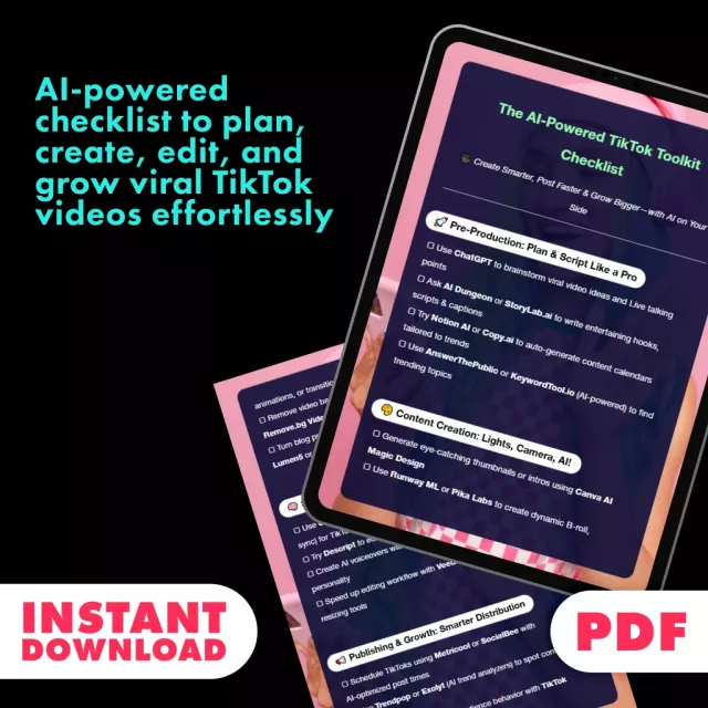 The AI-Powered TikTok Toolkit Checklist | Viral Content Strategy Guide | Digital Download for Creators Using AI Tools for TikTok