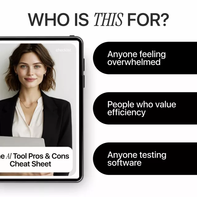 Feeling overwhelmed by the explosion of AI tools on the market? You’re not alone. The AI Tool Pros & Cons Cheat Sheet is a practical, easy-to-use checklist designed to help you quickly evaluate new AI tools pros and cons before you waste time, money, or energy. Instead of getting distracted by hype, this digital checklist helps you focus on what actually matters: your goals, your workflow, and real-world results. Whether you’re testing your first AI tool or comparing several options, this resource gives you a clear framework to decide with confidence.