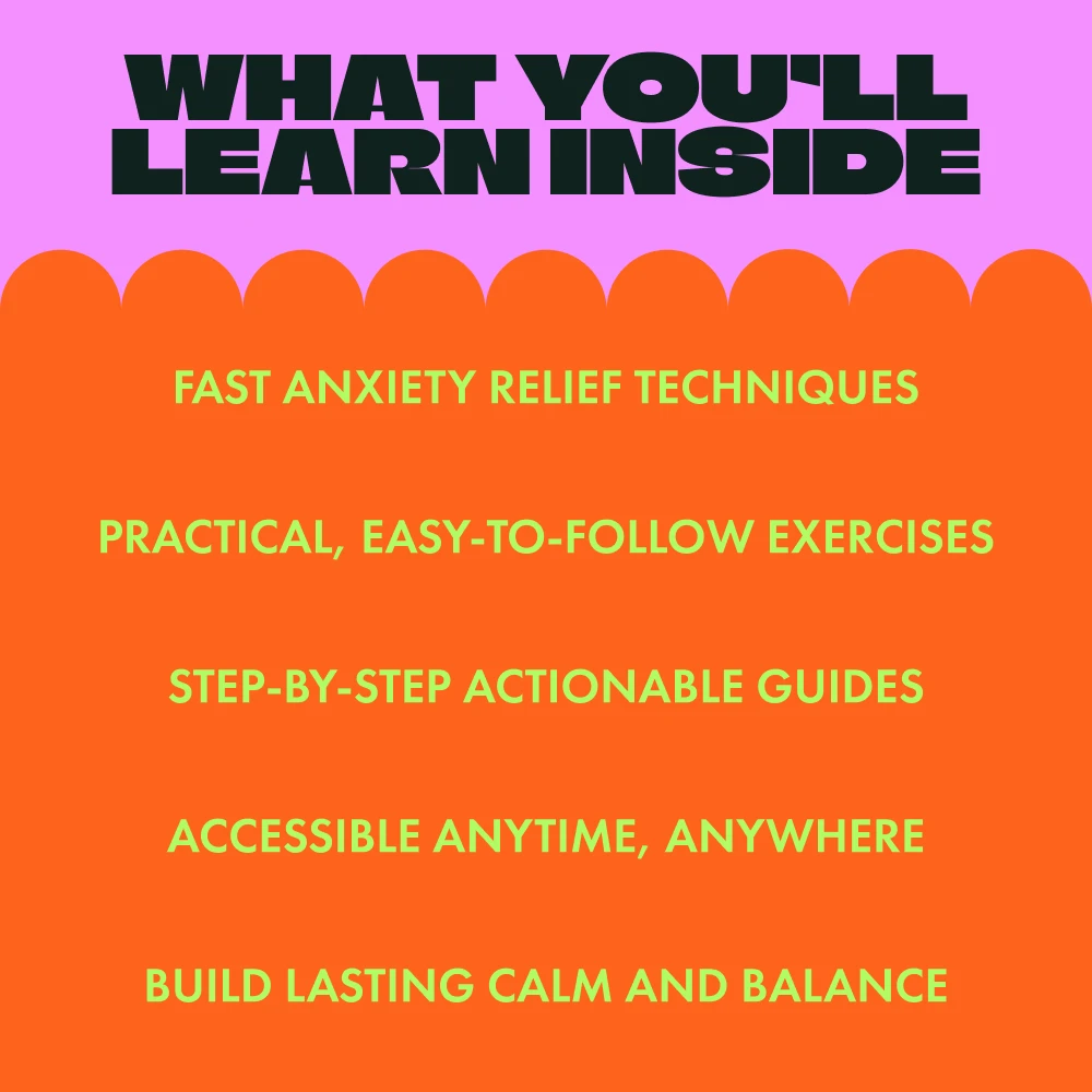 • Find Your Calm and Conquer Anxiety Checklist: A practical checklist to guide you through daily steps to keep anxiety at bay and foster lasting calm.