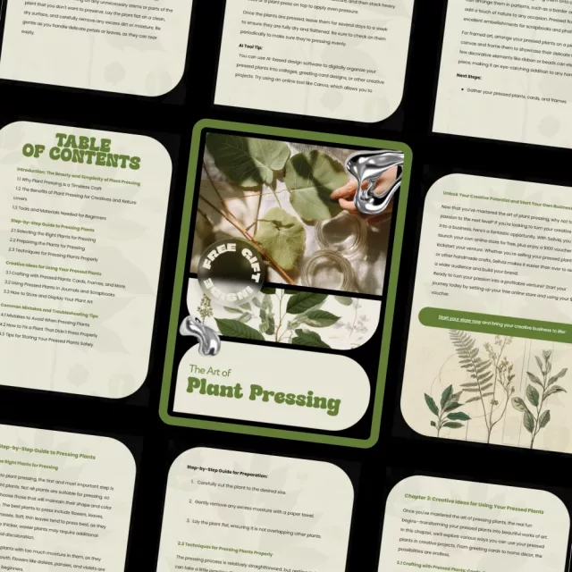 Unlike generic tutorials, The Art of Plant Pressing focuses on simplicity, creativity, and real-world results. It combines practical instruction with artistic inspiration, making it easy to turn pressed plants into meaningful projects you’ll actually use and enjoy.