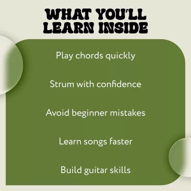 Unlike other generic eBooks or checklists, The Beginner’s Guitar Guide combines easy-to-follow explanations, practical exercises, and interactive tips. It’s carefully structured to ensure that learning guitar playing for beginners is simple, effective, and enjoyable. Plus, it includes modern AI learning strategies to help you learn faster and play your favorite songs sooner.