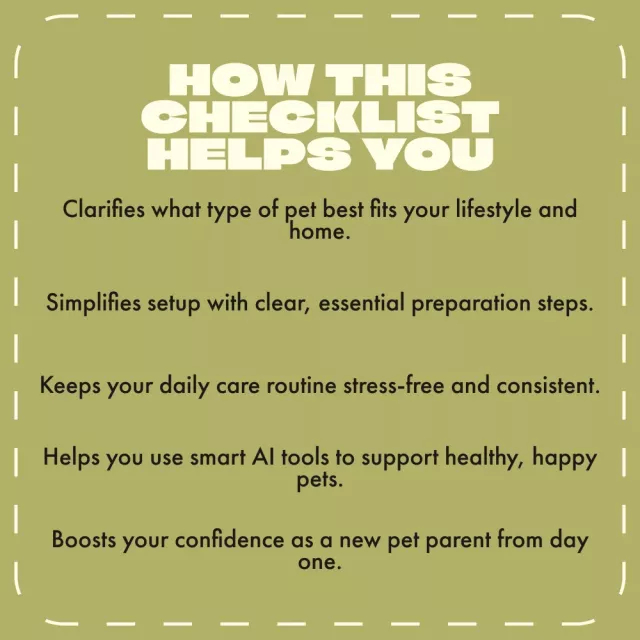 Becoming a pet owner should feel exciting, not overwhelming. With The Beginner’s Pet Owner Checklist, you’ll have a clear plan to welcome your new companion confidently. Download your copy now and take the first step toward finding the best first pet for beginners — one that matches your lifestyle, space, and heart!