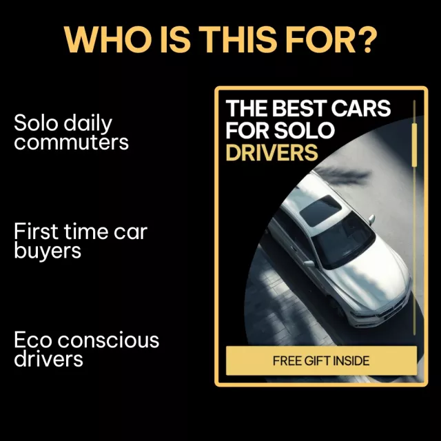 This ebook is ideal for first-time car buyers, daily commuters, remote workers, city drivers, and anyone researching the best cars for solo drivers. It’s written in simple, human language and focuses only on what matters when you’re usually the only one in the car.