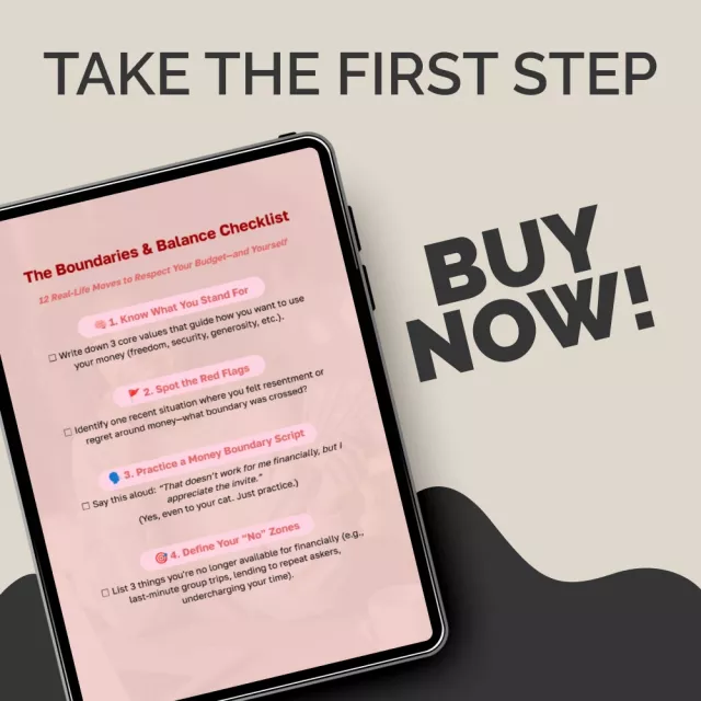 If you’re ready to strengthen your relationship with money and feel more in control of your daily decisions, The Boundaries & Balance Checklist is your new go-to companion. Designed to help you understand your values, protect your energy, and create healthier patterns with spending, giving, and saying no, this digital checklist turns money boundaries in daily life into simple, doable steps. Whether you’re navigating tricky conversations, impulse spending, guilt-driven yeses, or unclear personal limits, this tool helps you shift from overwhelm to empowerment—one small action at a time.