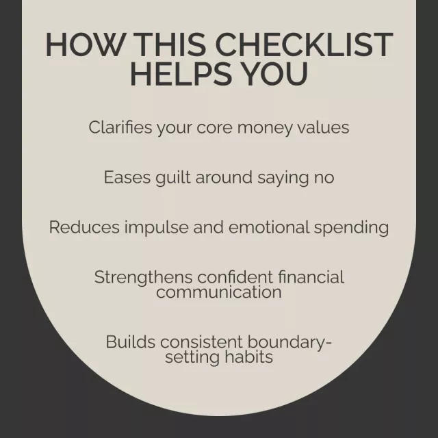 This checklist is perfect for anyone who struggles with overspending, people-pleasing, unclear money conversations, or a constant feeling of financial imbalance. It’s for those who want support, structure, and gentle accountability while learning how to hold money boundaries in daily life with confidence and compassion.
