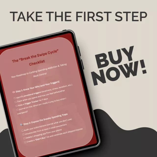 You deserve to feel confident with your money. Download the “Break the Swipe Cycle” Checklist today and start your journey toward financial clarity. Learn how to curb spending addiction in a practical, empowering way—and begin creating the balance and freedom you’ve been looking for.