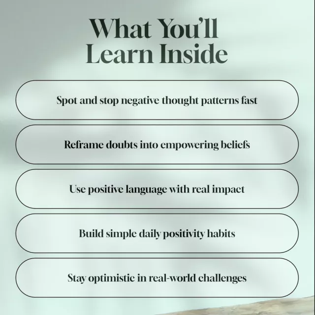 • Bonus positive thinking checklist + 7-Day Mini Challenge for daily practice