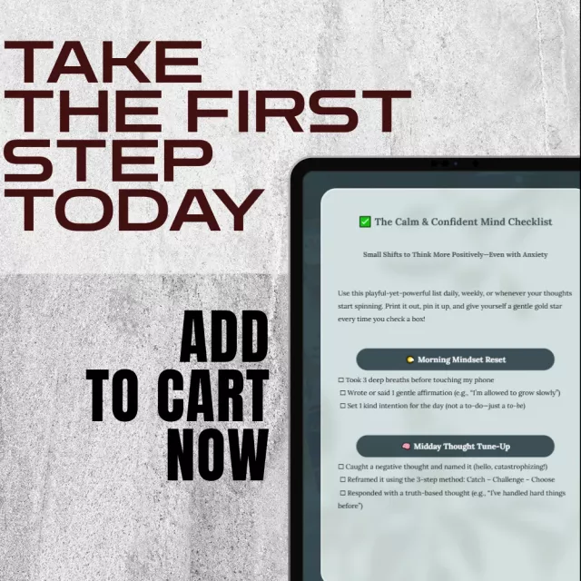 Download your copy today and start creating small, steady shifts toward clarity, calm, and confidence. The Calm & Confident Mind Checklist is your invitation to slow down, support yourself, and grow with intention—no matter where you’re starting from.