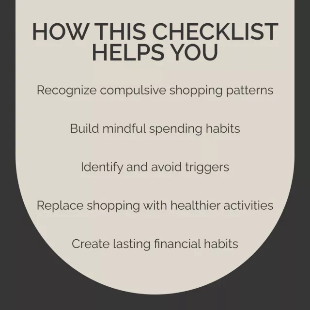 This checklist is perfect for anyone wondering how to know if you have a shopping addiction or struggling with the emotional pull of impulsive buying. Whether you’re just starting to notice signs of compulsive shopping, or you’ve already realized it’s time to make a change, this guide is designed for you. It’s a practical resource that works for people at any stage of their shopping habits, helping them replace unhealthy behaviors with positive, long-lasting change.