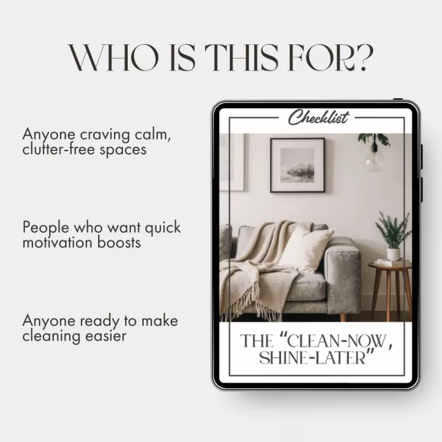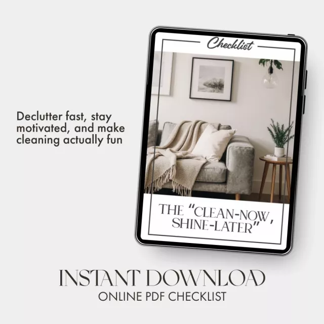 Download The “Clean-Now, Shine-Later” Checklist today and finally make cleaning feel easy, energizing, and rewarding. Turn five minutes into momentum — and your space into your sanctuary. Click “Add to Cart” to start your fresh, clutter-free chapter now!