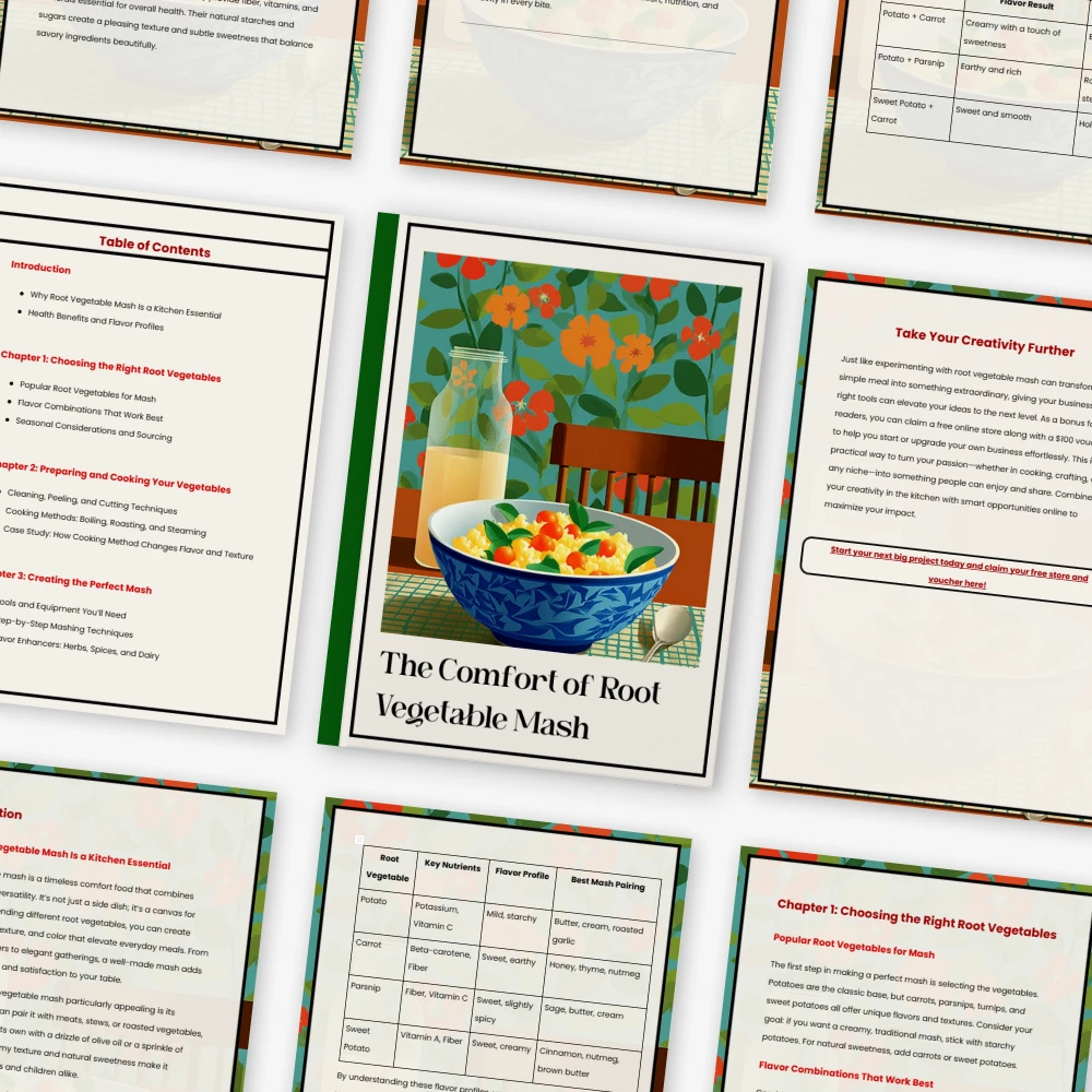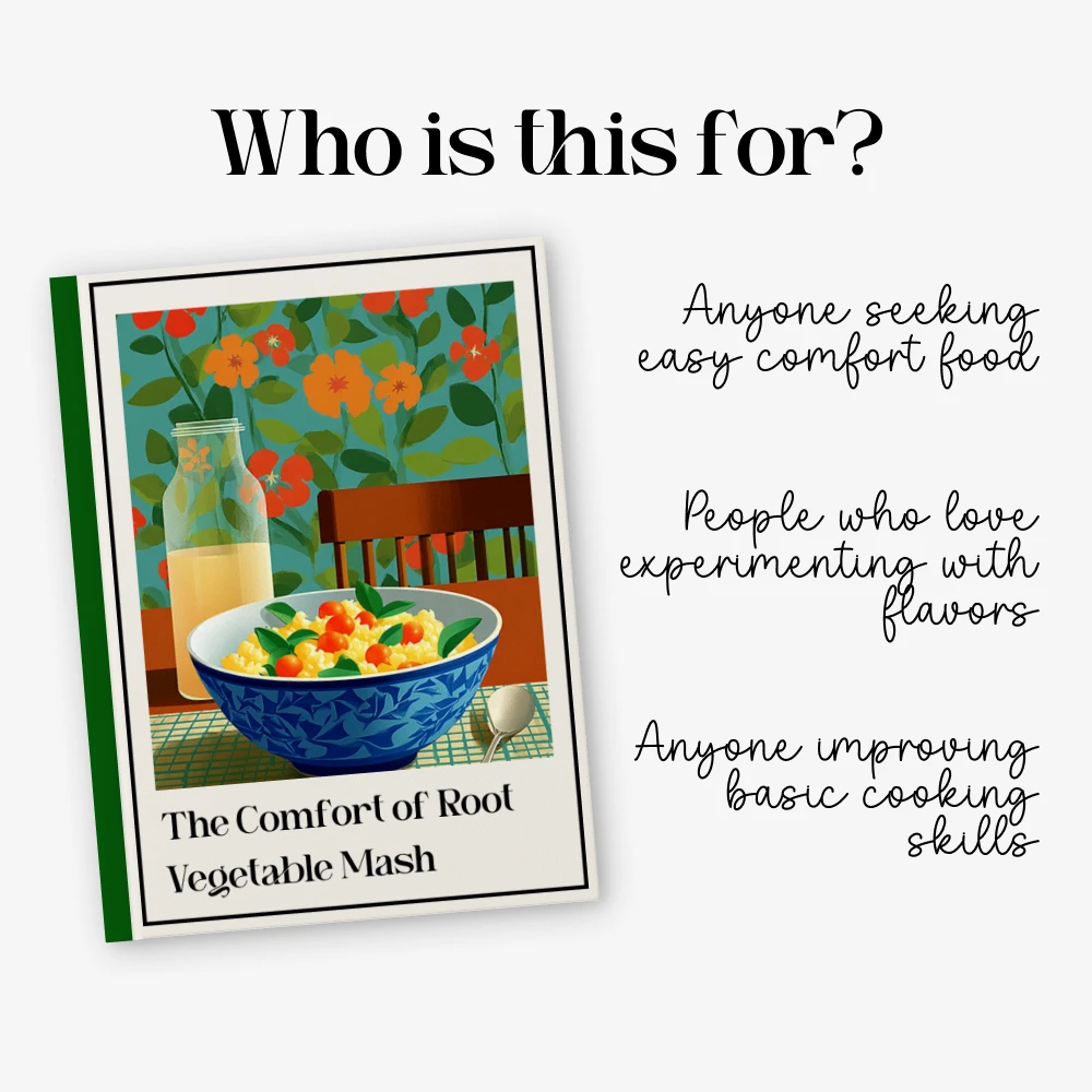 Unlike generic recipe collections, The Comfort of Root Vegetable Mash focuses entirely on mastering one versatile dish. It does not just tell you what to do, it teaches you why each step matters. From flavor science to cooking method comparisons and AI-supported creativity, this guide blends tradition with modern tools to give you a truly unique learning experience.