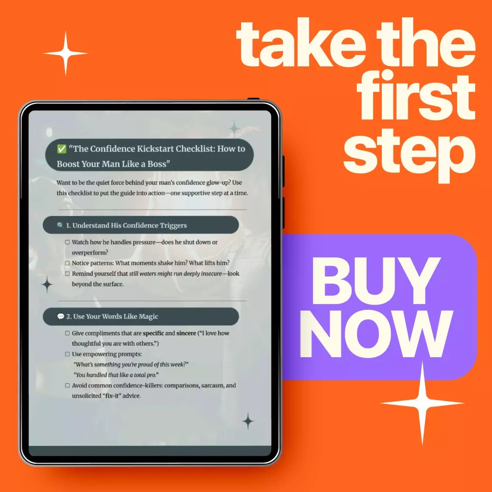 Ready to help your partner shine like never before? Download The Confidence Kickstart Checklist: How to Boost Your Man Like a Boss now and start taking empowering steps towards a more confident, successful partner. One small checklist can create a world of change—are you ready to be his support system?