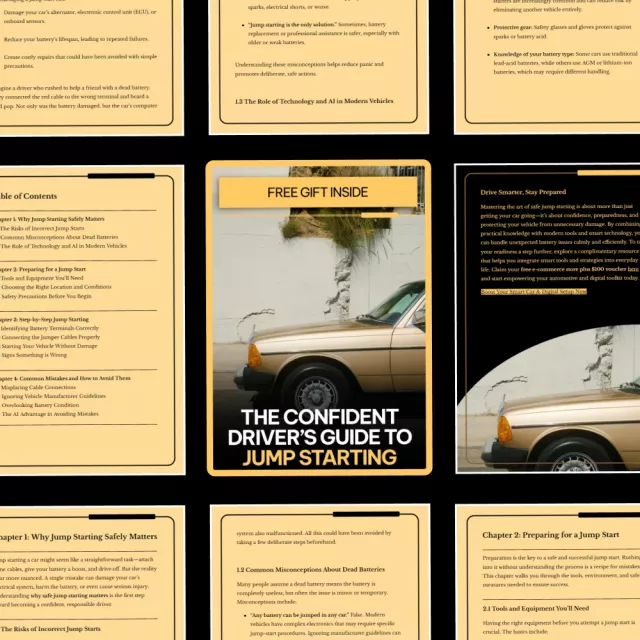 Unlike generic car manuals or short checklists, this eBook combines expert insights, relatable examples, and modern tech guidance to help you learn the safe steps for jump starting a car in a way that feels approachable and empowering. It goes beyond the basics by showing how AI and smart tools are reshaping vehicle care, giving you knowledge that stays relevant as automotive technology evolves.