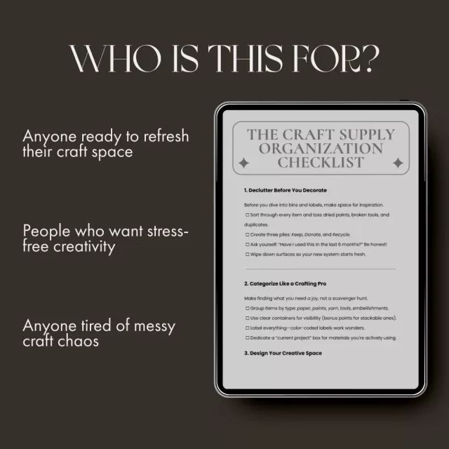 This checklist isn’t just about tidying up—it’s about creating a sustainable system that keeps your creative flow uninterrupted. Unlike generic decluttering guides, The Craft Supply Organization Checklist blends practical home organization methods with digital tools, helping you harness technology to simplify your crafting life. It’s the best way to organize craft supplies while also boosting your creativity and focus.