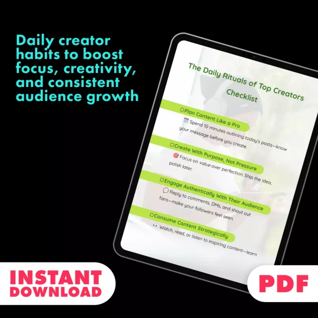 Ever wonder what separates top creators from everyone else? It’s not just talent—it’s their daily habits. The Daily Rituals of Top Creators Checklist is a simple, powerful digital download designed to help you follow the exact steps successful creators take every day. Whether you’re building your brand, growing an audience, or simply craving more consistency in your creative work, this checklist will give you a proven structure to stay focused, inspired, and productive. If you’ve been searching for a guide that shows you what top creators do every day, this is it.