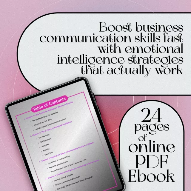 Take your communication skills to the next level with The EQ Edge: Mastering Emotional Intelligence in Business Communication — a comprehensive, easy-to-digest eBook designed for ambitious professionals, team leaders, and entrepreneurs. Whether you’re navigating tense meetings, leading diverse teams, or managing digital communication with clients, this digital download is your go-to guide for mastering emotional intelligence in business communication.
