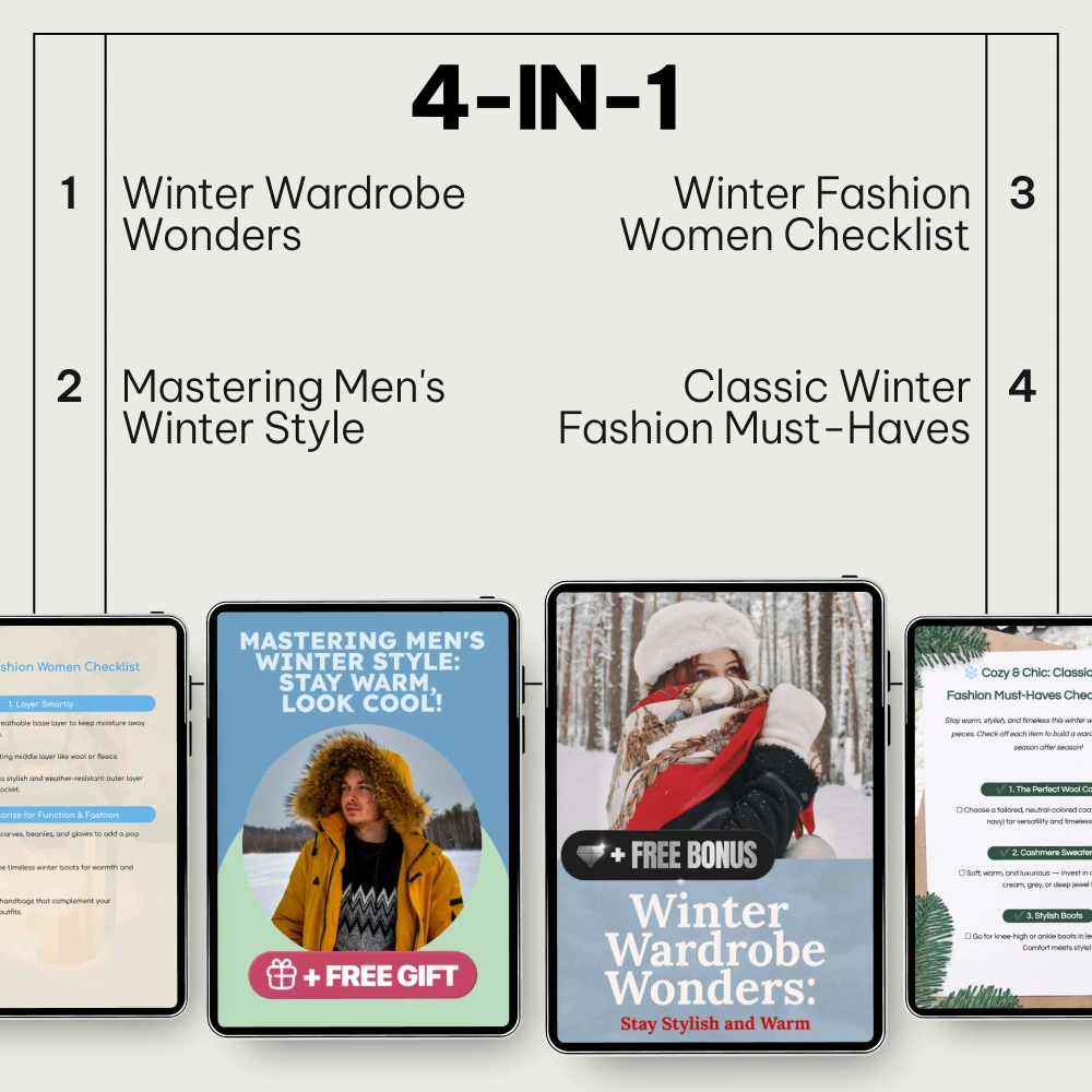 Winter fashion doesn’t have to mean sacrificing style for warmth. With the Essential Winter Fashion Trends Bundle, you’ll unlock the ultimate digital toolkit to keep you looking chic while staying cozy. This 4-in-1 bundle includes everything you need to refresh your wardrobe and master the latest winter trends. From men’s and women’s fashion guides to essential checklists, we’ve crafted the perfect set of resources for a flawless winter look.