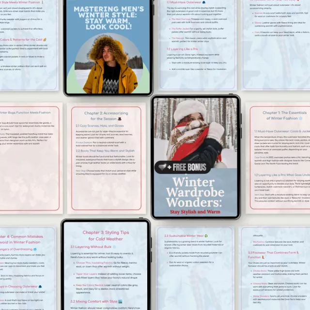 Winter fashion has always been a struggle for me. I mean, who doesn't want to look stylish while staying warm? But it's not that easy when you have no idea how to layer clothes or what pieces are essential for the season. Then, I found this digital bundle of winter fashion guides and eBooks. It was like finding a treasure chest! The advice is practical and actionable, which made revamping my wardrobe way less overwhelming than I thought it would be. Now I can confidently step out into the cold knowing that I'm not only going to stay warm but also turn heads with my chic outfit!